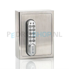 Deze sleutelkluis is geschikt om sleutel door te geven aan wisselde personen. De kluis is voorzien van een elektronisch slot met gebruikerscode (4 cijfers) en mastercode (8 cijfers). Door de tweepuntssluiting en de wanddikte van 3 mm biedt deze kluis een extra bescherming. Standaard is dit type voorzien van 3 sleutelhaken en voorbereid voor muurverankering.