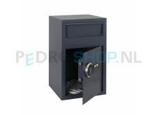 Deze afstortkluis van Filex biedt een eerste bescherming tegen inbraak en brand. Standaard wordt dit type uitgevoerd met een elektronisch slot (inclusief batterijen en noodsleutel). Deze kluis kan zowel in de vloer als in de wand verankerd worden. Het verankeringsmateriaal wordt erbij geleverd. De afstortkluis is voorzien van een afstortklep met anti-hengelvoorziening en wordt in de kleur antraciet geleverd. De afstortvoorziening kent een afmeting van 100x280x150 mm.