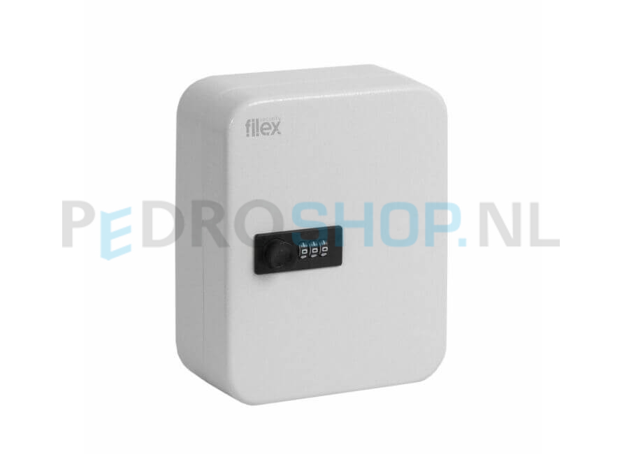 De sleutelkasten van Filex worden standaard uitgevoerd met een cilindersleutelslot met 2 sleutel of een codeslot. De kluisjes kennen verschillende opbergcapaciteiten namelijk: 20, 48 of 93 haken. Deze key box is voorzien van 20 genummerde haken en uitgevoerd met een mechanisch cijfercombinatieslot. De sleutelkluis kan aan de muur bevestigd worden, het bevestigingsmateriaal wordt erbij geleverd.