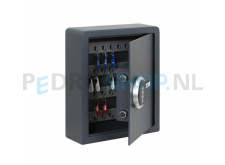 Deze serie sleutelkluizen biedt een berscherming tegen inbraak en brand. Deze kluis is standaard voorzien van een elektronisch slot (inclusief batterijen en noodsleutels). Er zijn verschillende opbergcapaciteiten mogelijk namelijk: 32, 82 of 140 haken. De kluis is voorzien van in hoogte verstelbare hakenlijsten en wordt geleverd in de kleur antraciet. Het verankeringsmateriaal waarmee u de kluis aan de muur kunt bevestigen wordt standaard meegeleverd.