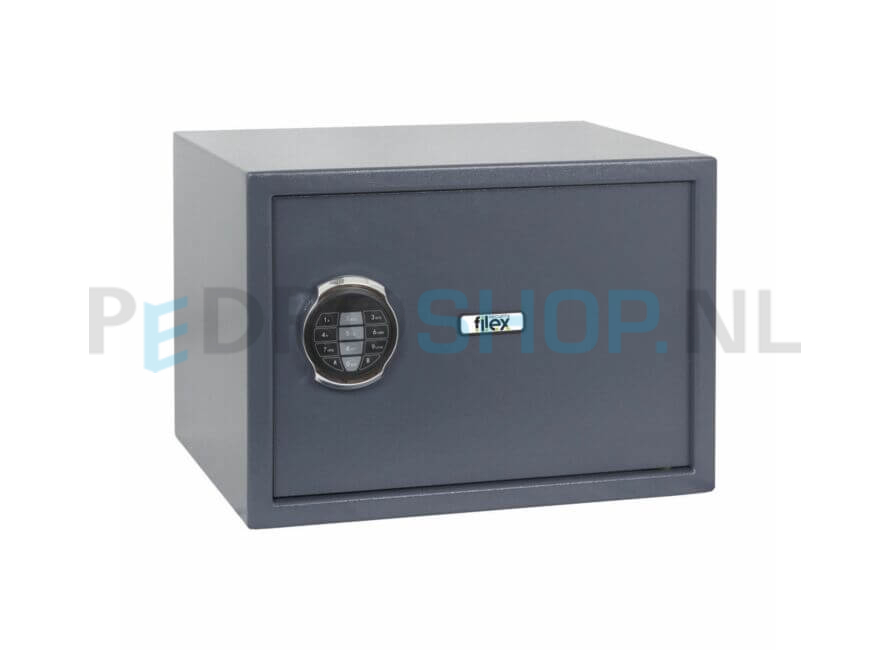 De Filex safe box serie is verkrijgbaar in vijf verschillende formaten. In deze safe box kunt u al uw documenten en kostbaarheden opbergen. Deze serie is voorzien van een elektronisch slot (inclusief sleutels en noodsleutels) en één legbord. Het kluisje is voorbereid voor zowel vloer- als muurverankering. Standaard wordt deze safe box in de kleur antraciet geleverd.