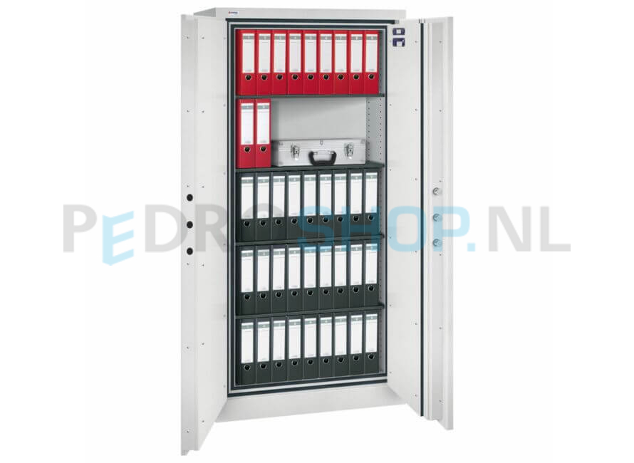 Binnen elke onderneming zijn belangrijke documenten aanwezig zoals contracten, eigendomsbewijzen en tekeningen. Deze kluis is inbraakwerend gecertificeerd volgens EN 14450 S2 en is brandwerend gecertificeerd volgens EN 15659 LFS30P. Deze kluis is uitgevoerd met een elektronisch slot en is voorzien van 4 in hoogte verstelbare legborden. Standaard wordt deze brand- en inbraakwerende kluis geleverd in de kleur lichtgrijs RAL7035.