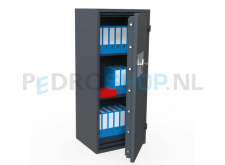 Deze brand- en inbraakwerende kluis van Salvus is voorzien van 3 in hoogte verstelbare legborden. Deze kluis kent een gecertificeerde inbraakwerendheid volgens EN 1143-1 Grade I en is brandwerend gecertificeerd volgens EN 15659 LFS60P. Dit type is standaard uitgevoerd met een dubbelbaard klavierslot met 2 sleutels. Deze serie is geschikt voor vloerverankering. Standaard wordt deze inbraak- en brandwerende kluis geleverd in de kleur grafiegrijs RAL7024.