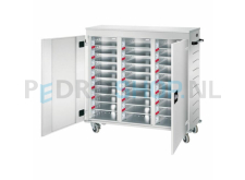 De Orgami LFW laptop- en tabletkarren zijn ideaal voor het opbergen en opladen van tablets en laptops. Standaard uitgevoerd met een cilinderslot met 2 sleutels en ventilatiegaten in de zij- en achterwanden. Elk vak is voorzien van een 220V stroomvoorziening en hebben de volgende afmeting: 85x340x385 mm.
