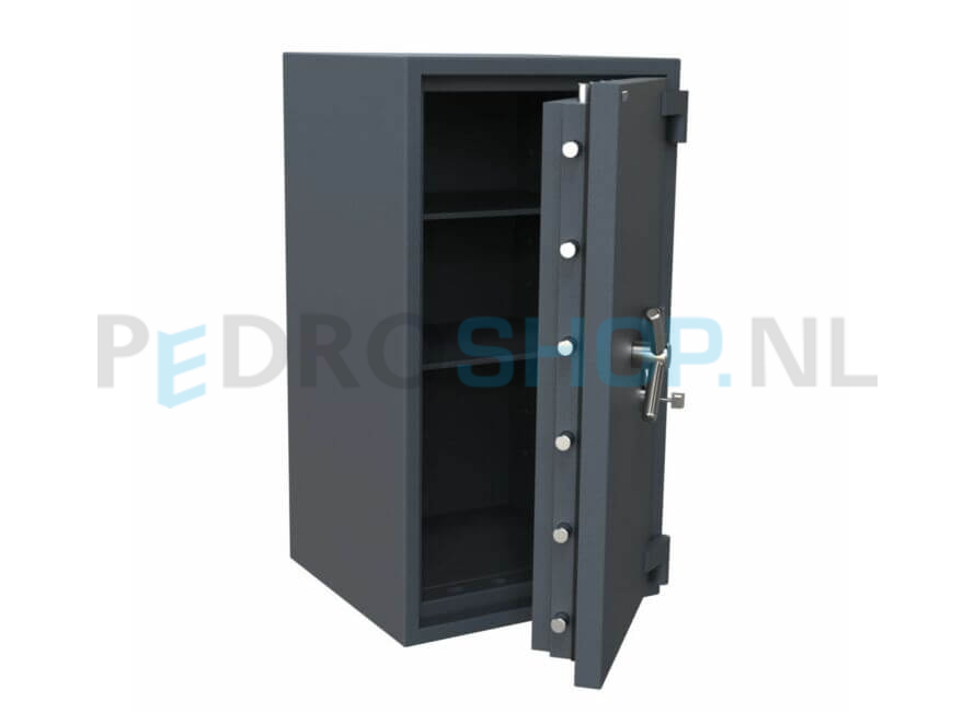 Deze brand- en inbraakwerende kluis van Salvus is voorzien van 2 in hoogte verstelbare legborden. Deze kluis kent een gecertificeerde inbraakwerendheid volgens EN 1143-1 Grade IV en is brandwerend gecertificeerd volgens EN 15659 LFS30P. Dit type is uitgevoerd met een elektronisch cijferslot. Deze serie is geschikt voor zowel vloer- als muurverankering. Standaard wordt deze inbraak- en brandwerende kluis geleverd in de kleur grafiegrijs RAL7024.