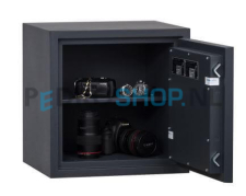Deze homesafe is inbraakwerend gecertificeerd volgens EN 14450S2 en brandwerend gecertificeerd volgens EN 15659 LFS30P. Uitgevoerd met een dubbelbaard klavierslot en voorzien van 1 legbord. Voor zowel vloer- als muurverankering geschikt en geleverd in de kleur antracietgrijs RAL7016.