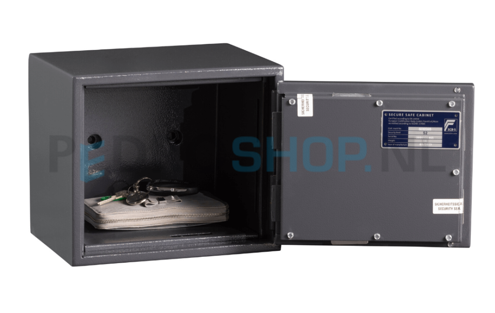 Deze serie van DRS is brandwerend getest en biedt een uitstekende inbraakwerendheid. Deze kluis wordt geproduceerd volgens EN14450 Security level 2 en ECB-S waardoor ze de perfecte keuze zijn voor zowel particuliere, als zakelijke toepassingen. De waardeberging is € 5.000 voor contant en € 9.000 voor kostbaarheden. Dit model K is voorzien van een dubbelbaardslot en is voorbereid voor muur- en vloerverankering. Standaard wordt deze serie geleverd in de kleur antraciet RAL7016.