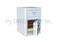 Deze afstortkluis van Salvus biedt een bescherming tegen brand en inbraak. Dit type is inbraakwerend gecertificeerd volgens EN 1143-1 Grade II en is brandwerend gecertificeerd volgens DIN 4102. Standaard uitgevoerd met een elektronisch slot met programmeerbare openingsvertraging en voorzien van 1 in hoogte verstelbaar legbord. Deze brand- en inbraakwerende afstortkluis heeft een apart afsluitbare afstortlade (100x200x200mm) en wordt geleverd in de kleur verkeersgrijs A RAL7042.