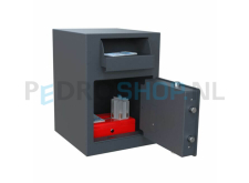 Deze afstortkluis biedt een bescherming tegen inbraak. Standaard uitgevoerd met een EN 1300 gecertificeerd elektronisch slot en een afstortklep met anti-hengelvoorziening. Dit type heeft een inwerpopening van 69x210 mm en geleverd in de kleur grafietgrijs RAL7024.