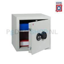 Deze privékluis van Sistec biedt een bescherming tegen brand en inbraak. De kluis voldoet zowel aan het Europese keurmerk EN14450 S2 als het Nederlandse SKG keurmerk. Deze serie is brandwerend gecertificeerd volgens DIN 4102. Voorzien van een elektronisch cijferslot en 1 in hoogte verstelbaar legbord. Voorbereid voor zowel vloer- als muurverankering en wordt geleverd in dek kleur lichtgrijs RAL7035.