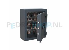 Deze kluis biedt een bescherming tegen inbraak en brand. Deze serie is inbraakwerend gecertificeerd volgens EN 1143-1 Grade 0 en brandwerend gecertificeerd volgens DIN 4102. Uitgevoerd met een elektronisch cijferslot en voorzien van 100 haken. Wordt geleverd in de kleur grafietgrijs RAL7024.