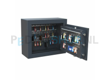Deze kluis biedt een bescherming tegen inbraak en brand. Deze serie is inbraakwerend gecertificeerd volgens EN 1143-1 Grade 0 en brandwerend gecertificeerd volgens DIN 4102. Uitgevoerd met een elektronisch cijferslot en voorzien van 56 haken. Wordt geleverd in de kleur grafietgrijs RAL7024.