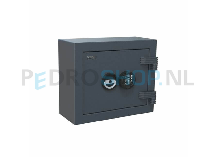 Deze kluis biedt een bescherming tegen inbraak en brand. Deze serie is inbraakwerend gecertificeerd volgens EN 1143-1 Grade 0 en brandwerend gecertificeerd volgens DIN 4102. Uitgevoerd met een elektronisch cijferslot en voorzien van 56 haken. Wordt geleverd in de kleur grafietgrijs RAL7024.