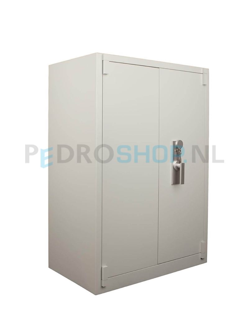 Geschikt voor het beschermen van documenten tegen brand en diefstal. Hiermee biedt deze documentenkast u een veilige oplossing om uw waardevolle documenten in op te bergen. De documentenkast is voorzien van een dubbelbaard sleutelslot ( 2 sleutels meegeleverd) en in hoogte verstelbare legborden. De kast wordt geleverd in de kleur grijs RAL 7035. Model 1200 heeft een aantal van 2 legborden. De documentenkast wordt geproduceerd volgens DIN 4102. Dit betekent dat de kast niet officeel is getest op brandwerendheid, maar wel een eerste bescherming biedt bij brand. Beschikbaar met afsluitbaar binnenvak (hoogte binnenvak: 360mm).