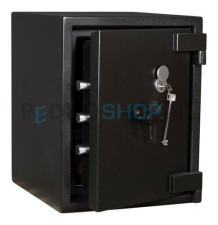 Deze inbraak- en brandwerende kluis DRS Euro Defender II heeft een brandwerendheid van 60 minuten en biedt een indrukwekkende bescherming tegen inbraak. Deze serie wordt geproduceerd volgens NT Fire-017 60P en EN1143-1 klasse 2. De waardeberging is € 25.000 voor contact geld en € 50.000 voor kostbaarheden. De wanden en deur zijn dubbelwandig uitgevoerd en door de uitwendige scharnieren kan de deur 180 graden geopend worden. Deze kluis is voorbereid voor vloerverankering en kent een dubbelbaard sleutelslot. Standaard wordt deze serie geleverd met één uitneembaar legbord in de kleur zwart RAL9005.