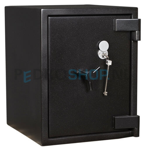 Deze inbraak- en brandwerende kluis DRS Euro Defender II heeft een brandwerendheid van 60 minuten en biedt een indrukwekkende bescherming tegen inbraak. Deze serie wordt geproduceerd volgens NT Fire-017 60P en EN1143-1 klasse 2. De waardeberging is € 25.000 voor contact geld en € 50.000 voor kostbaarheden. De wanden en deur zijn dubbelwandig uitgevoerd en door de uitwendige scharnieren kan de deur 180 graden geopend worden. Deze kluis is voorbereid voor vloerverankering en kent een dubbelbaard sleutelslot. Standaard wordt deze serie geleverd met één uitneembaar legbord in de kleur zwart RAL9005.