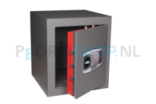 € 5.000 voor contant en € 9.000 voor kostbaarheden. Dit model DPE is voorzien van een elektronisch cijferslot (wordt zonder batterijen geleverd) en is voorbereid voor vloer- en muurverankering. Deze privékluis wordt standaard in de kleur donkergrijs geleverd met één uitneembaar legbord.