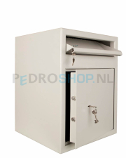 Door de aparte inwerpklep boven aan de kluis kunt u geld en waardevolle documenten veilig afstorten en biedt deze serie een bescherming tegen inbraak. Deze afstortkluis is speciaal ontworpen voor dagopbrengsten. Standaard is deze serie voorzien van een cilinderslot op de afstortklep. De kluis is voorbereid voor vloerverankering en wordt in de kleur grijs RAL7035 geleverd.