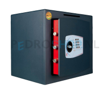 Deze serie winkelkluizen van Trony Gold is speciaal ontworpen voor de detailhandel en horeca. Door de smalle inwerpopening kan je het kassageld makkelijk en snel afstorten. Deze winkelkluis biedt een eerste bescherming tegen inbraak en is voorzien van een elektronisch cijferslot (wordt zonder batterijen geleverd). Aan de buitenkant van de deur zit een noodopening met dubbelbaard noodsleutel. De kluis is voorbereid voor zowel vloer- en muurverankering en wordt geleverd in de kleur donkerblauw.