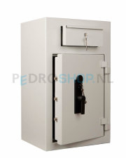 Deze serie van DNS is geproduceerd volgens EN 1143-2 klasse 0 en heeft geen brandwerende eigenschappen. Zowel de kluis als de lade zijn voorzien van een dubbelbaard sleutelslot, hierdoor biedt de kluis een goede bescherming tegen inbraak. Deze afstortkluis is voorbereid voor vloerverankering en wordt standaard geleverd in de kleur grijs RAL7035.