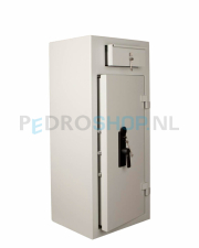 Deze serie van DNS is geproduceerd volgens EN 1143-2 klasse 0 en heeft geen brandwerende eigenschappen. Zowel de kluis als de lade zijn voorzien van een dubbelbaard sleutelslot, hierdoor biedt de kluis een goede bescherming tegen inbraak. Deze afstortkluis is voorbereid voor vloerverankering en wordt standaard geleverd in de kleur grijs RAL7035.