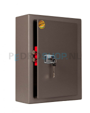 Deze serie van technomax biedt een eerste bescherming tegen inbraak en is geschikt voor het opbergen van sleutels. Dit model is voorzien van een dubbelbaard sleutelslot en is voorbereid voor muurverankering. Standaard wordt deze sleutelkluis geleverd in de kleur donkergrijs.
