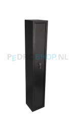 Deze wapenkluis biedt een bescherming tegen inbraak en is voorzien van een dubbelbaard sleutelslot. Voor het opbergen van munitie is deze kluis uitgerust met een extra binnenvak met cilinderslot. Deze serie is voorbereid voor zowel vloer- als muurverankering en wordt standaard geleverd in de kleur zwart.