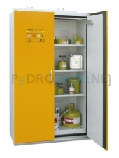 Een chemicaliënkast is noodzakelijk voor iedereen die werkt met gevaarlijke stoffen. Deze kast is getest volgens EN14470-1 type 90 (certificaat op aanvraag) en voldoet aan de PGS-richtlijn. De kastdeuren sluiten automatich bij brand als de temperatuur boven de 50°C komt. Luchtaanvoer- en afvoerkaneel sluit automatisch bij een temperatuur van 70°C. Voorzien van twee ventilatiekanalen met ingebouwde brandkleppen (DN80). Standaard geleverd met een cilindersleutelslot. Deze kast is voorzien van 3 legborden van gepoedercoat staal en een vloeistofdichte bodemopvangbak. Standaard geleverd in de kleur lichtgrijs RAL7035