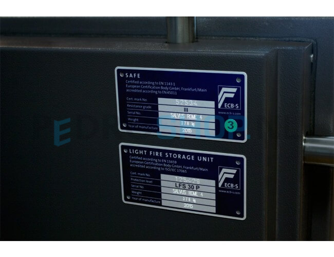 De Salvus Rome biedt een bescherming tegen brand en inbraak. De kluis is brandwerend gecertificeerd volgens EN 15659 LFS30P en inbraakwerend gecertificeerd volgens EN 1143-1 Grade III. Uitgevoerd met een dubbelbaard klavierslot en voorzien van 2 in hoogte verstelbare legborden. Deze serie is voorbereid voor zowel vloer- als muurverankering en wordt geleverd in de kleur grafietgrijs RAL7024.
