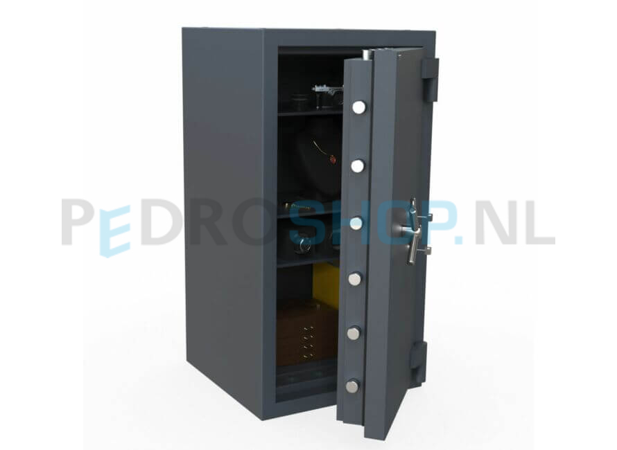 Deze serie van Salvus biedt een bescherming tegen zowel inbraak als brand. De kluis is inbraakwerend gecertificeerd volgens EN 1143-1 Grade V en brandwerend gecertificeerd volgens DIN4102. Standaard voorzien van 2x een dubbelbaard klavierslot en 3 in hoogte verstelbare legborden. Deze serie wordt geleverd in de kleur grafietgrijs RAL7024.